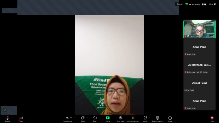 Serikat Petani Indonesia (SPI) bersama Focus on Global Sotuh, Kilusan, Trade Justice Pilipinas, dan Third World Network menggelar Webinar “Internasional: Menuju Transformasi Sistem Perdagangan Global” pada Jumat (27/03/2026) di tengah momentum Konferensi Tingkat Menteri ke-14 World Trade Organization (WTO) di Kamerun. Kegiatan ini menyoroti dampak kebijakan perdagangan global yang dinilai memperdalam kemiskinan dan ketimpangan, melemahkan kedaulatan negara berkembang, serta mendorong privatisasi dan deregulasi yang lebih menguntungkan korporasi multinasional dibanding petani, nelayan, dan pekerja.